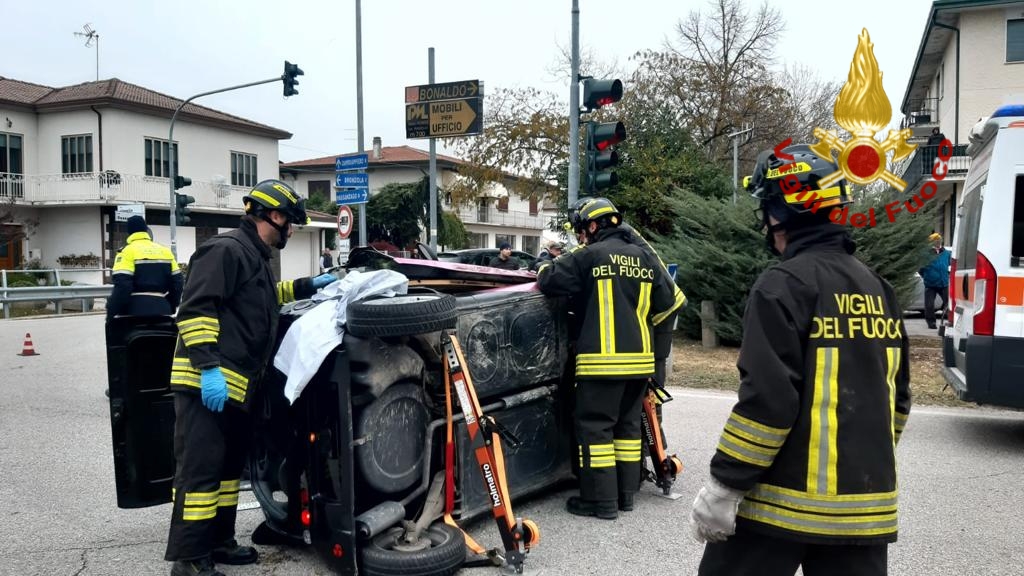 Alle 15:00, di lunedì, i vigili del fuoco sono intervenuti in via Longhin angolo via Bassa terza a Campodarsego in provincia di Padova per una minicar finita rovesciata dopo aver urtato un'auto ferm...