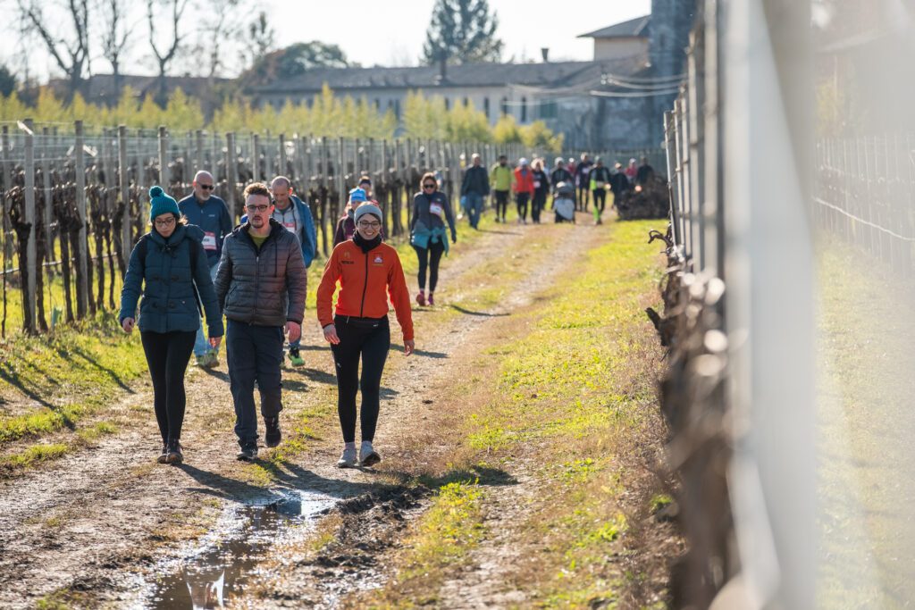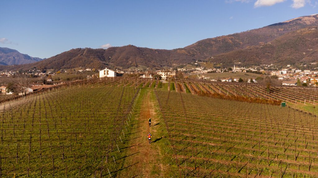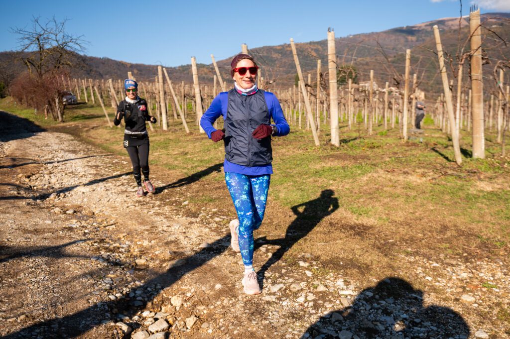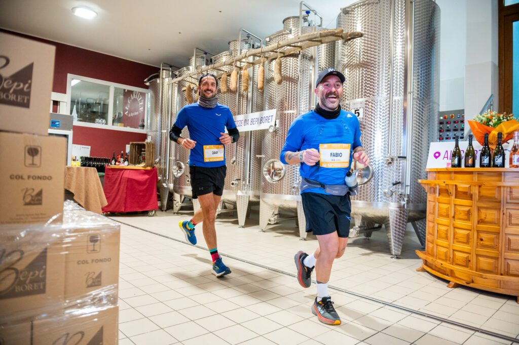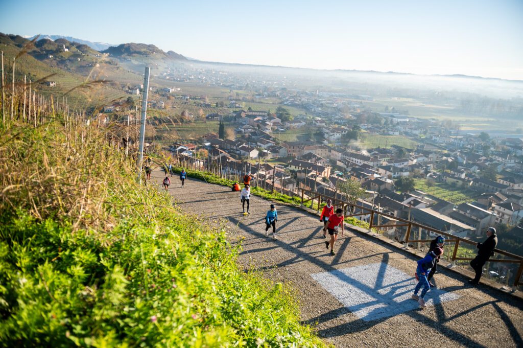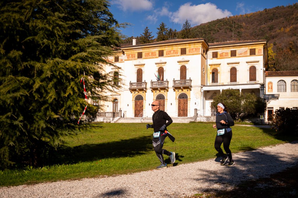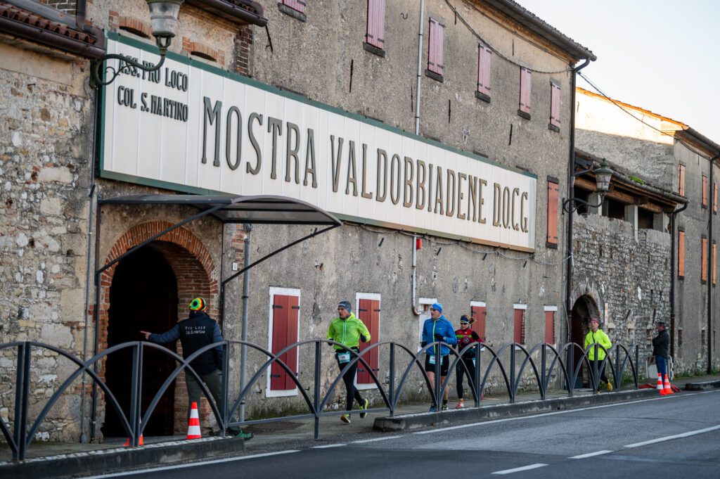 Dopo la partenza a Vidor dalla cantina La Tordera, i partecipanti si si sono diretti verso Mosnigo, in comune di Moriago della Battaglia e hanno potuto ammirare i Palù, zona paludosa bonificata nel XIV° secolo dai monaci benedettini (si tratta di un ecosistema di prati delimitati da siepi e canali ad elevatissima biodiversità). E’ stato poi toccato il comune di Farra di Soligo, con la frazione di Col San Martino e la sede della Pro Loco di San Martino, che ospita la più antica Mostra del Vino. I runner hanno potuto inoltre apprezzare le chiese di San Martino e di San Vigilio dominate dalle Torri di Credazzo. Poi sono entrati in comune di Valdobbiadene, con il passaggio a Guia, con la chiesa di San Giacomo Apostolo (eretta nel 1674), e in località il Follo, borgo agricolo ai piedi della collina del Cartizze, e a Saccol. I partecipanti sono transitati dentro il parco di Villa dei Cedri, sede dal 2019 dell’Associazione per il Patrimonio delle Colline del Prosecco di Conegliano e Valdobbiadene per arrivare poi nel centro di Valdobbiadene, con piazza Marconi, il Duomo e la Pieve. Poi è stata la volta del Parco della Filandetta (“un recupero di archeologia industriale, integrazione tra un simbolo di industrializzazione e l’agricoltura, ma anche un contenitore dover arte e cultura si incontrano”) e di Villa Morona De Gastaldis. I podisti sono poi transitati in Rive de Milan (con la sua maestosa casa padronale veneta) e in località Bigolino (con i tanti capitelli votivi, segni della devozione popolare). Infine il rientro a Vidor, lungo le sponde del torrente Teva e sui tornanti di località Boschete, passando per San Giovanni e prima dell’arrivo, dentro all’Abbazia Benedettina di Santa Bona (eretta nel 1106), con il traguardo posto in piazza Capitello.