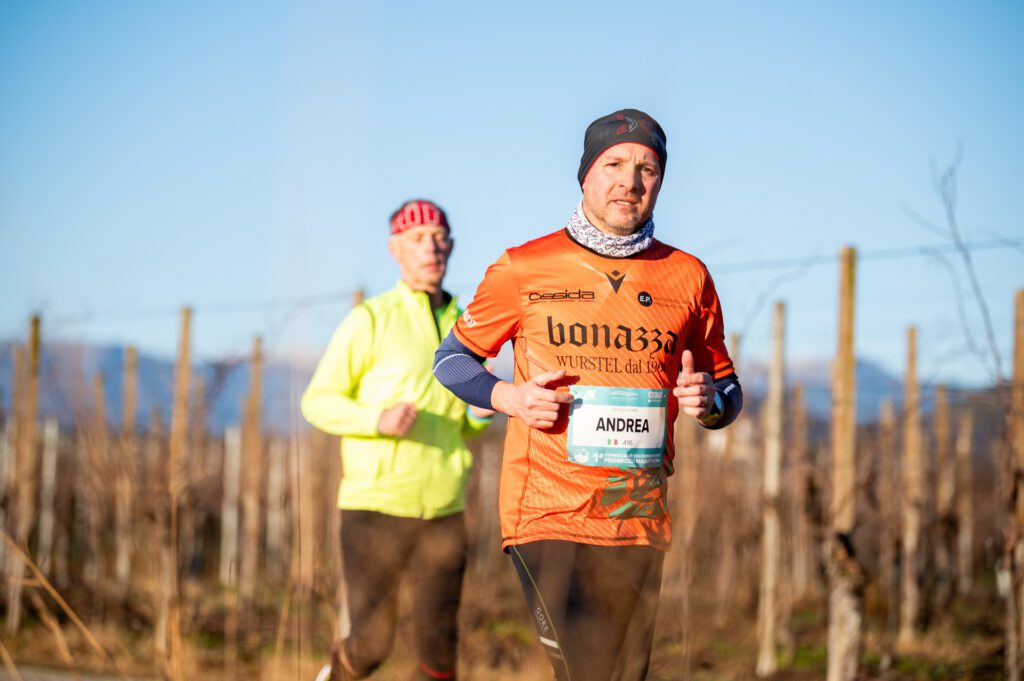 Sono arrivati da cinque Continenti e 26 Paesi del mondo per partecipare al Conegliano Valdobbiadene Prosecco Running Festival. Oggi, domenica 3 dicembre, a Vidor, 3500 tra runner e camminatori (e oltre 450 stranieri), hanno scelto di partecipare all’evento firmato da Asd Tri Veneto Run, dividendosi tra Conegliano Valdobbiadene Prosecco Marathon di 42 km, Conegliano Valdobbiadene Prosecco Run di 21 km e Conegliano Valdobbiadene Bollicina di 10 km. Uno spettacolo di entusiasmo, di colori, di sorrisi, di voglia di partecipare e di gustarsi il territorio delle Colline del Prosecco di Conegliano e Valdobbiadene patrimonio UNESCO, non solo nei suoi aspetti naturalistici e paesaggistici, ma anche architettonici, storici e soprattutto enogastronomici.