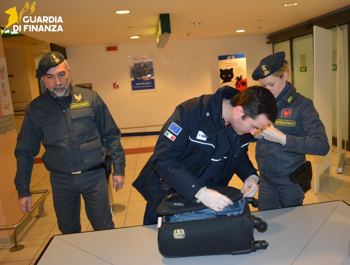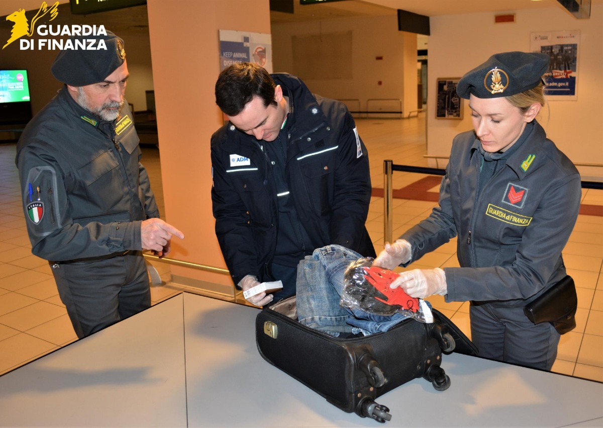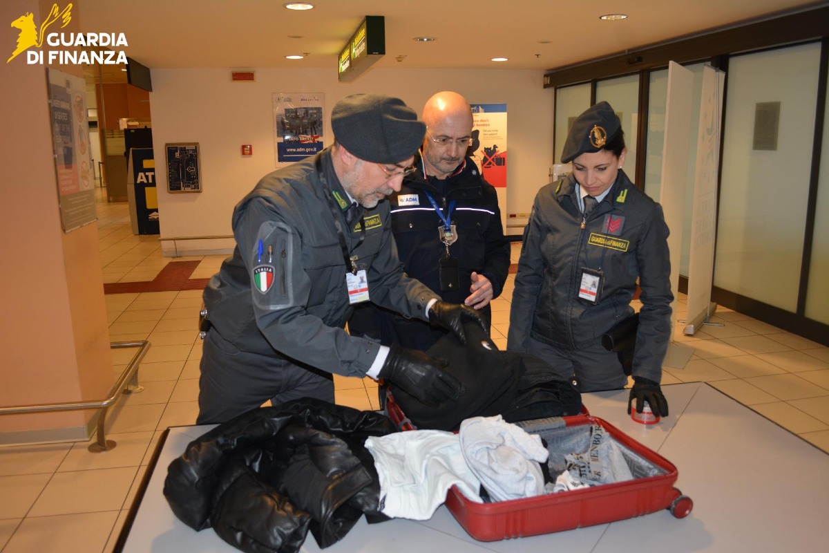 TREVISO - Il personale dell’Agenzia delle Dogane e dei Monopoli in servizio presso l’UADM VENETO 4 - Distaccamento Locale Aeroporto di Treviso e le Fiamme Gialle del Comando Provinciale di Treviso, nell’ambito dei controlli congiunti svolti presso il locale scalo aeroportuale “Antonio Canova” e finalizzati al contrasto del traffico di valuta e di stupefacenti, alla lotta alla contraffazione e al contrabbando di tabacchi e prodotti alcolici, hanno sanzionato, nell’ultimo anno, 247 viaggiatori, prevalentemente di rientro da diverse località di vacanza, con al seguito significative quantità di denaro contante, sostanze stupefacenti, articoli d’abbigliamento contraffatti, tabacchi lavorati esteri e prodotti alcolici in quantità superiori alle norme.