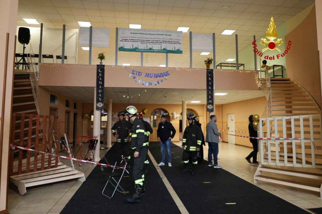 Il centro adibito a luogo di culto era pieno con la presenza di diverse centinaia di persone per i festeggiamenti del primo giorno dopo la fine del Ramadan avvenuto ieri.