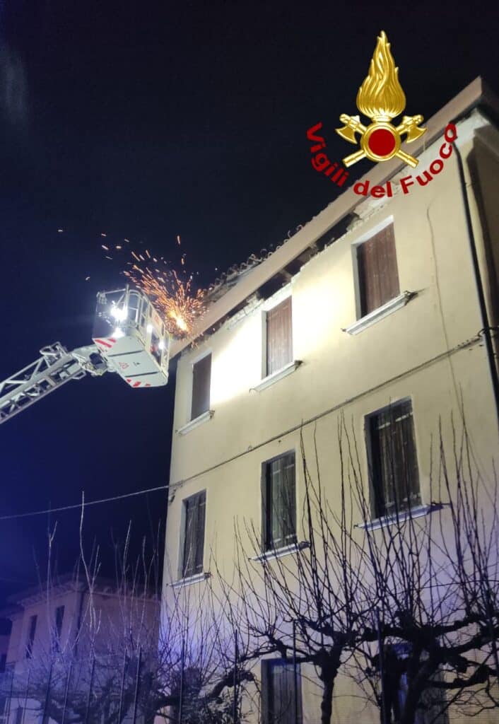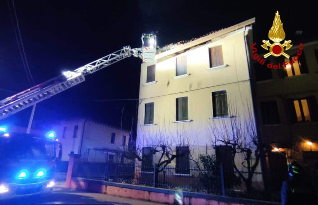 MESTRE. La notte scorsa alle 1:15, di domenica 2 febbraio, i vigili del fuoco sono intervenuti in Via Silvio Trentin a Mestre per il crollo parziale del tetto di una palazzina di tre piani.