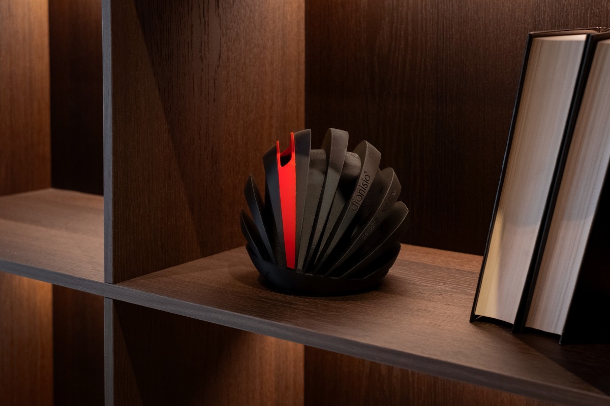 Dionisio è un diffusore acustico passivo privo di componenti elettroniche, ideato dalla designer Marta Giardini e prodotto interamente in zantech, materiale brevettato da Alisea composto per l’80% da grafite riciclata unita a un eccipiente minerale.