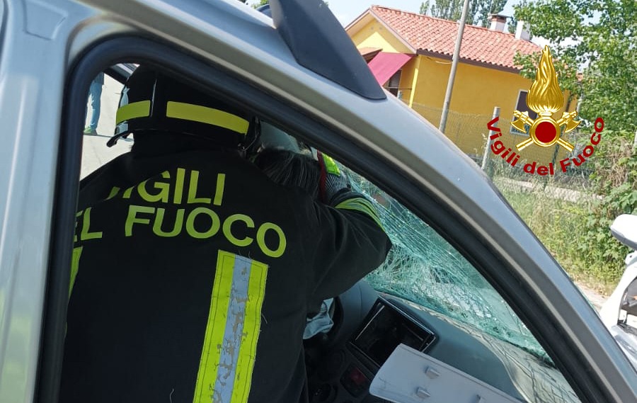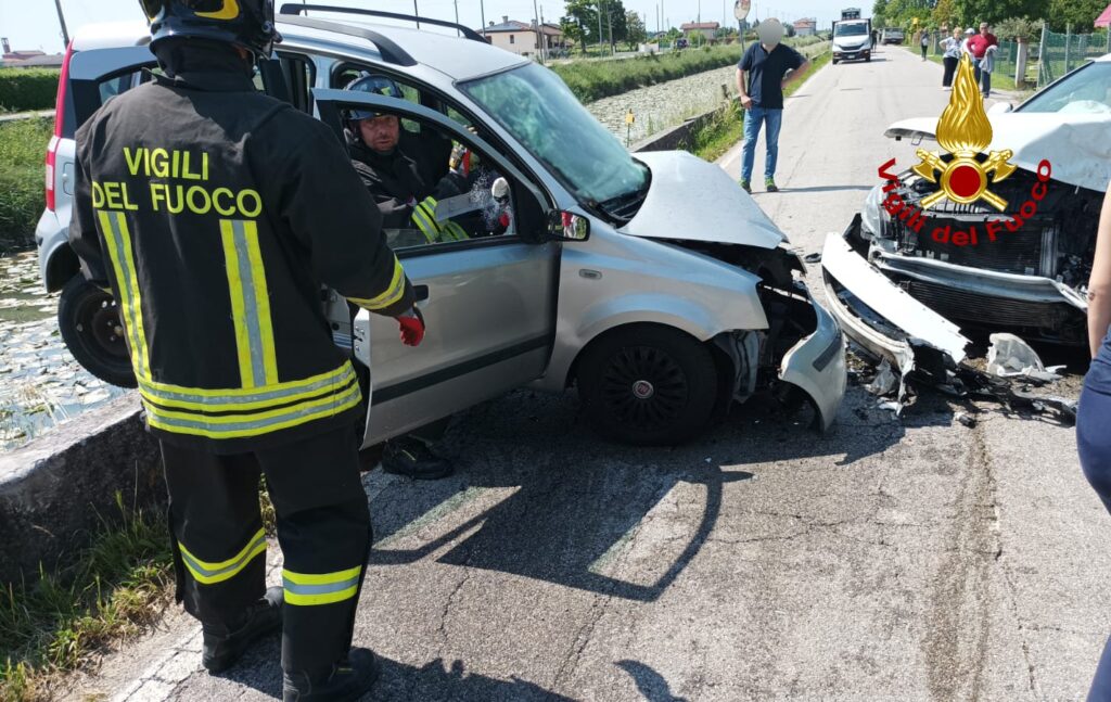 Il secondo incidente in via Grassaga a San Donà dove si sono scontrate due auto ed è rimasta ferita la conducente della Panda, rimasta incastrata ed estratta dalla squadra dei vigili del fuoco del locale distaccamento.