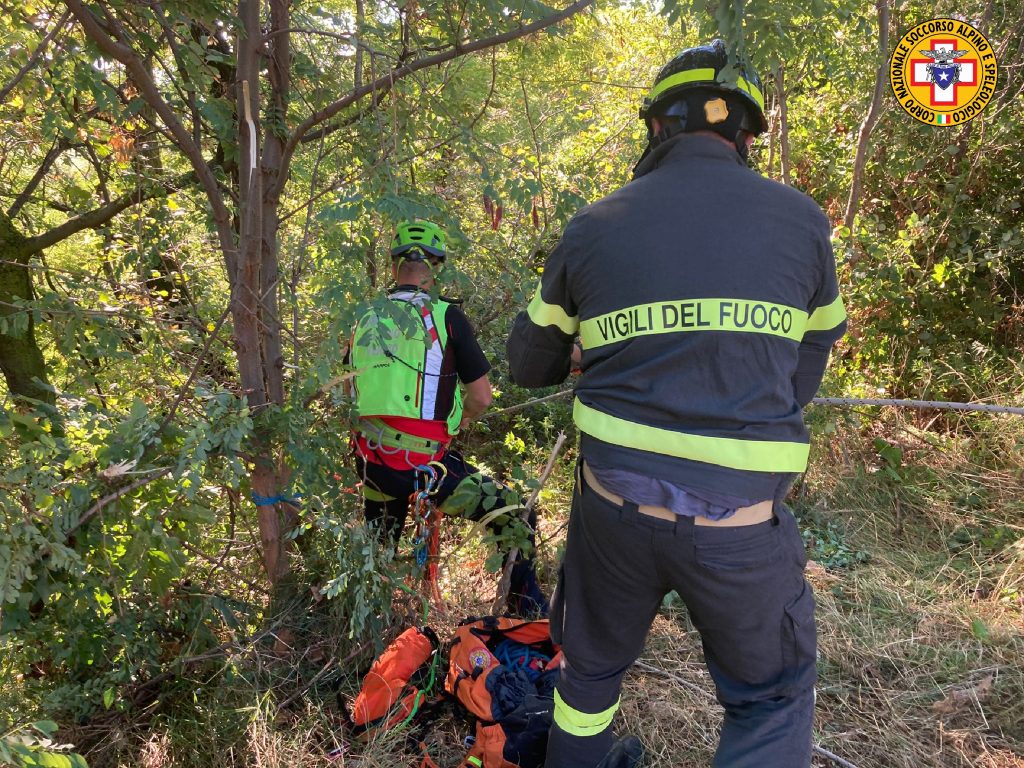 Una squadra è quindi sopraggiunta e, dopo che la donna è stata estratta dall'auto e imbarellata, senza aver riportato a una prima valutazione alcuna conseguenza, ha collaborato nel portarla sulla strada utilizzando un paranco.