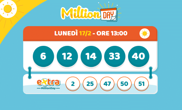 Scopri i numeri vincenti di oggi lunedì 17 febbraio 2025 per Million Day e Million Day Extra. Estrazione ore 13.00.