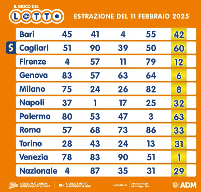 I numeri estratti martedì 11 febbraio 2025 sulle ruote del lotto