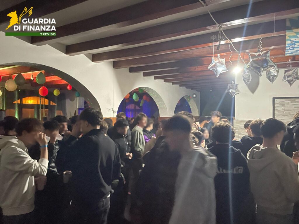 La Guardia di Finanza di Treviso ha interrotto una festa abusiva a Montello, denunciando l'organizzatore per mancanza di autorizzazioni, violazioni di sicurezza e alcol ai minorenni.