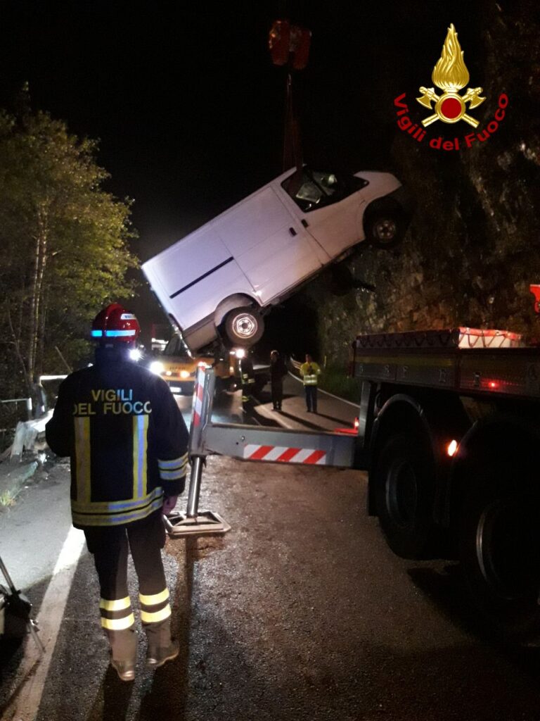 Sul posto un’ambulanza del Suem e i carabinieri. Le operazioni di recupero del mezzo da parte dei vigili del fuoco sono terminate alle 4:30.