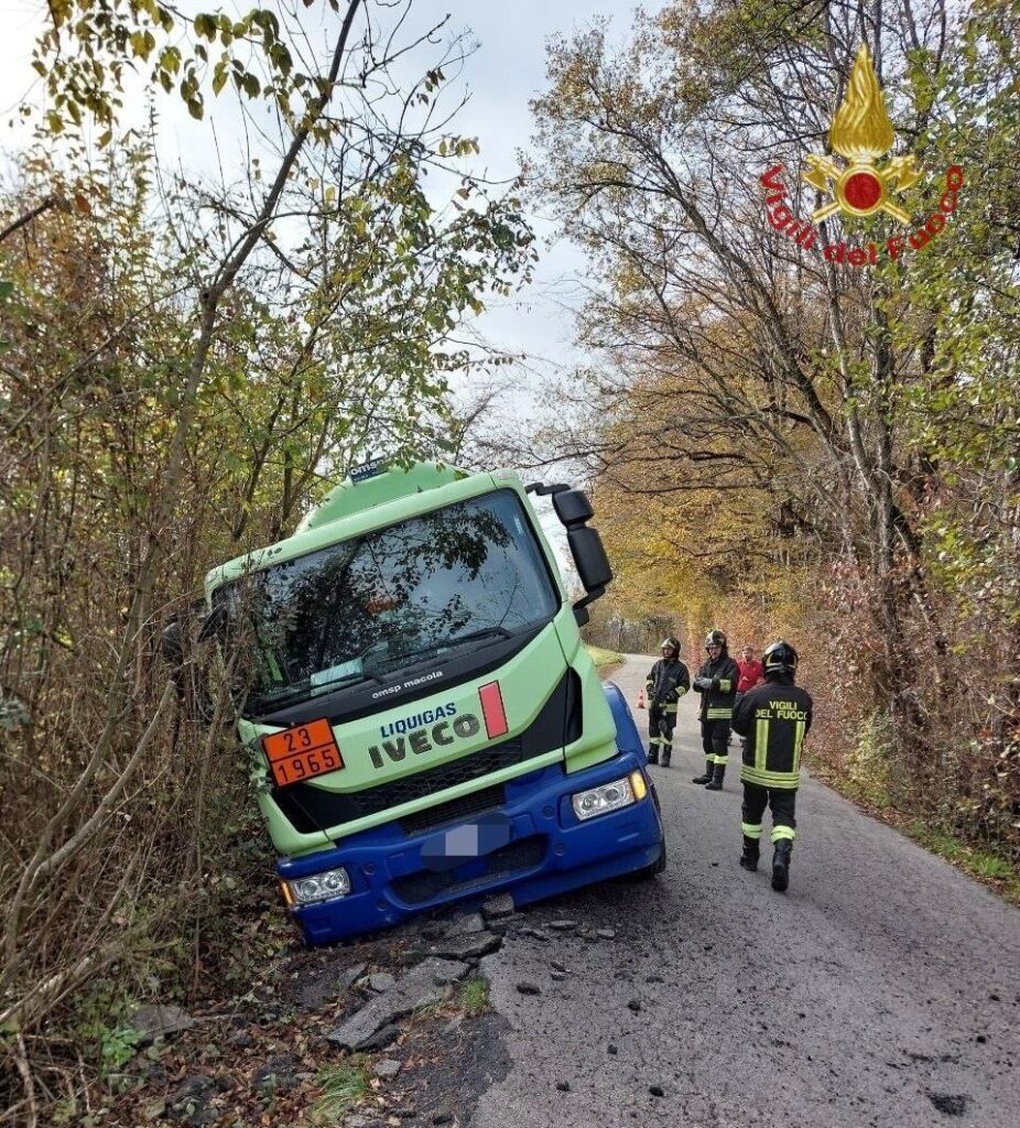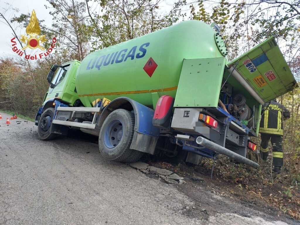 Finisce fuori strada con l'autocisterna carica di GPL e rimane bloccato