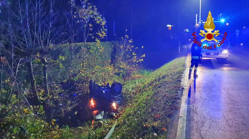 Poco prima delle 21:00 di domenica, vigili del fuoco sono intervenuti in via Giusti ad Abano Terme in provincia di Padova per un’auto finita rovesciata in un fossato dopo la perdita di controllo del c...