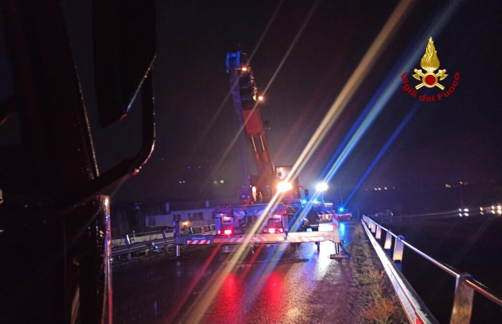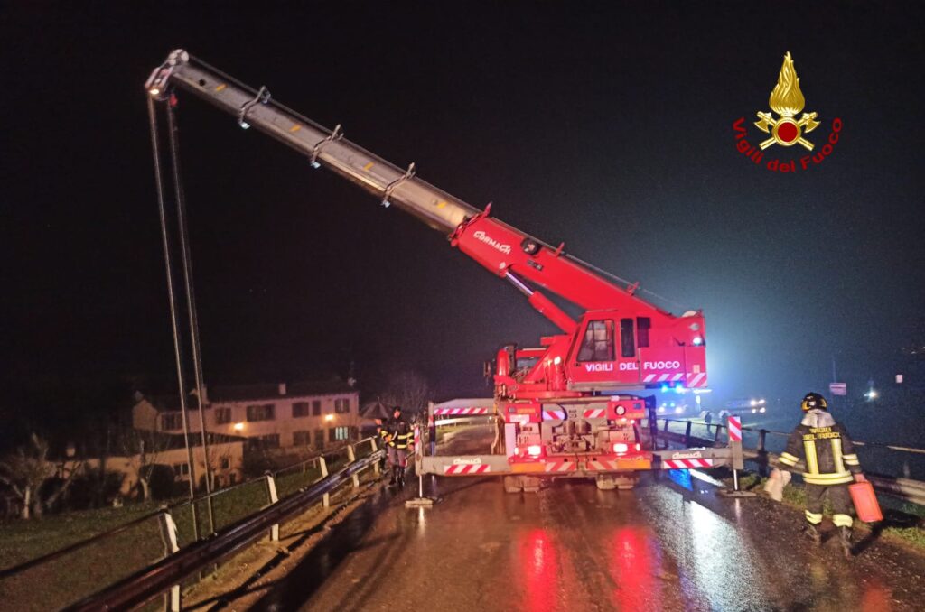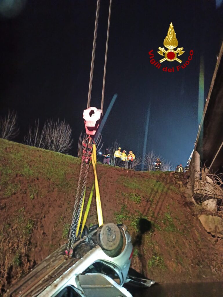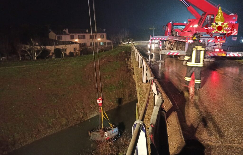 L’auto per cause in corso di accertamento è finita nel corso d’acqua, 10 metri circa più in basso rispetto al piano stradale.