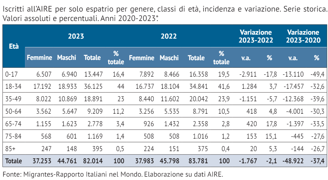 Al 1° gennaio 2023 i connazionali iscritti all’AIRE sono 5.933.418, il 10,1% dei 58,8 milioni di italiani residenti in Italia. Si legge nel rapporto della Fondazione Migrantes: