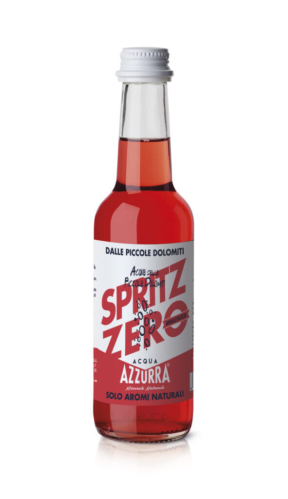 Gli aperitivi analcolici Acqua Azzurra, Spritz Zero, Bellini Zero, Gin Tonica Zero, Limoncello Zero, Mojito Zero sono gustosi aperitivi realizzati nelle originali bottiglie di vetro da 27,5 cl con l’acqua minerale delle Piccole Dolomiti e selezionati aromi naturali, senza coloranti artificiali e senza alcool. Promuovono una forma di socialità responsabile, la possibilità cioè di divertirsi e di socializzare bevendo analcolici.