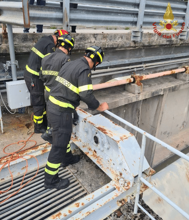 La forte precipitazione ha smosso ghiaia e detriti lungo il canalone, facendo riversare materiale all’interno dei vasconi di contenimento posizionati a difesa dell’abitato. In uno di questi, nascosta sotto il terreno, si trovava ancora una cisterna risalente a un vecchio insediamento Eni, demolito nel 2011. All’interno del serbatoio si conservavano ancora oltre dieci metri cubi di gasolio da riscaldamento.
