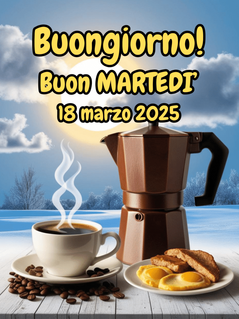"Buon martedì! Che questa giornata inizi con un caffè e tanta energia positiva."
