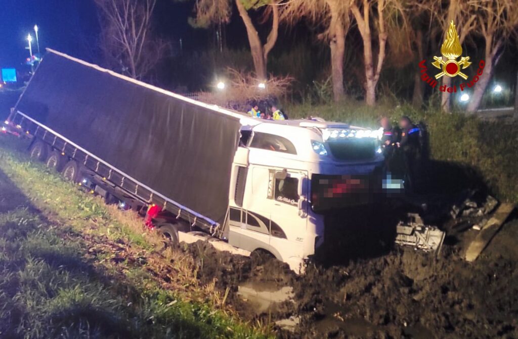 CHIOGGIA (VE). Alle 20:30, di lunedì, i vigili del fuoco sono intervenuti lungo la statale Romea al km 84 nel comune di Chioggia in direzione Venezia per un camion finito fuori strada: deceduto l’auti...