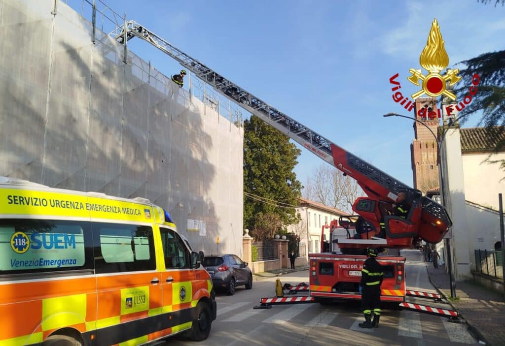 Grave incidente a Noale, dove un operaio è caduto da un’altezza di 4 metri durante lavori di ristrutturazione. Soccorso e trasportato in ospedale in elicottero.