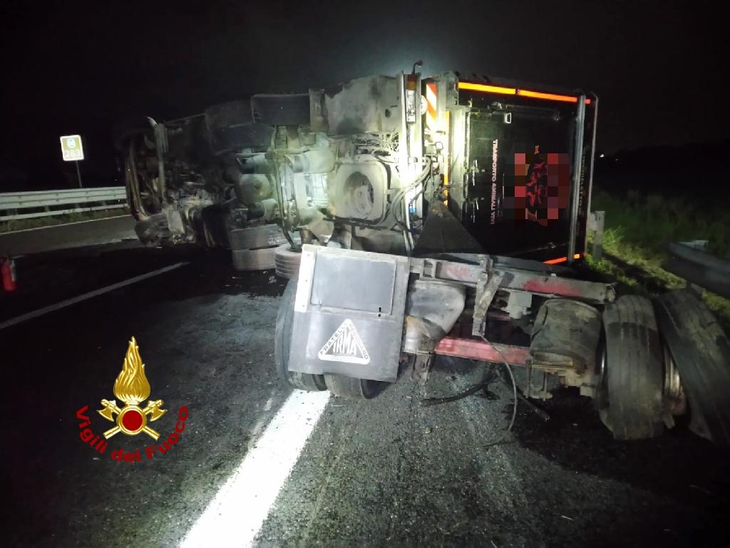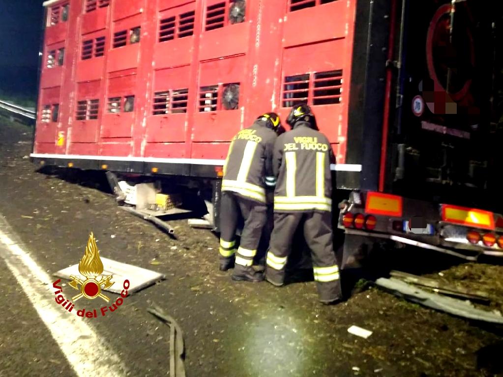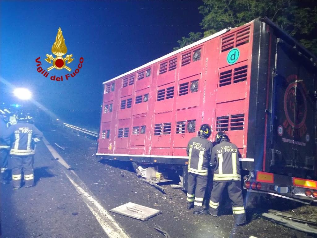 Il camion con 120 vitelli si ribalta in A4: morti 22 bovini, illeso il conducente
