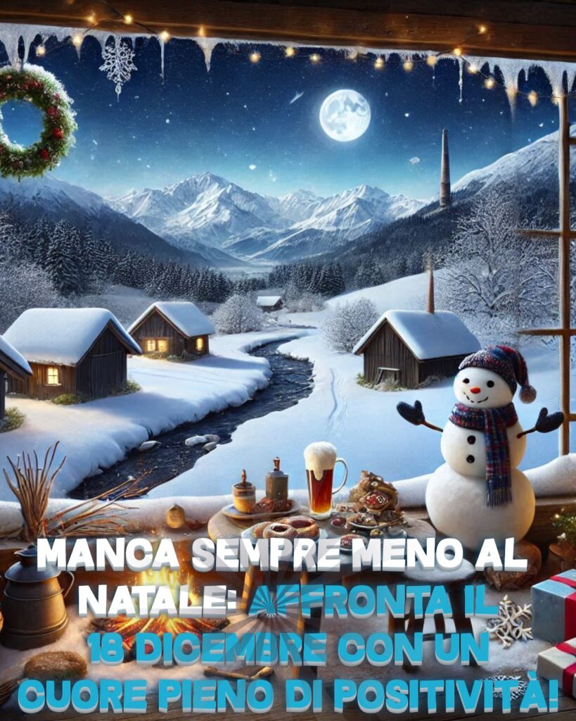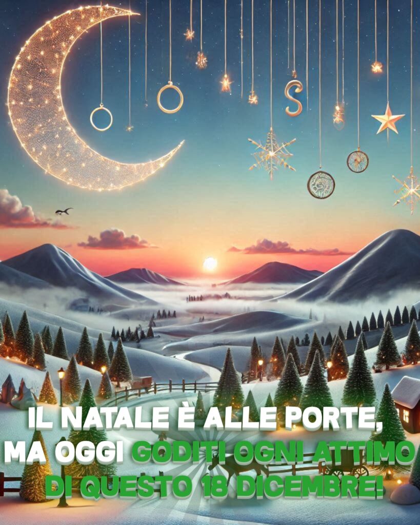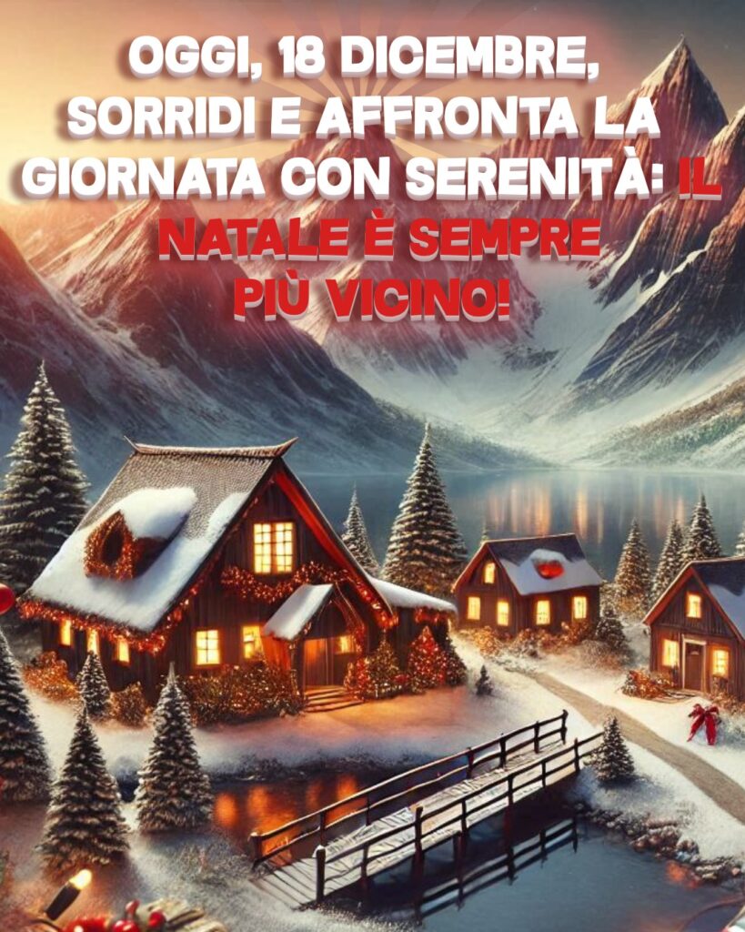 Il 18 dicembre 2024 non è solo una data del calendario, ma un nuovo capitolo della nostra vita, pronto ad essere scritto. Ogni giorno, infatti, è l’occasione per ricominciare, per affrontare le sfide con rinnovato ottimismo e per apprezzare i piccoli momenti che la vita ci offre. Che questo buongiorno sia il primo passo verso una giornata che ci arricchirà, ci farà crescere e ci aiuterà a diventare la versione migliore di noi stessi.