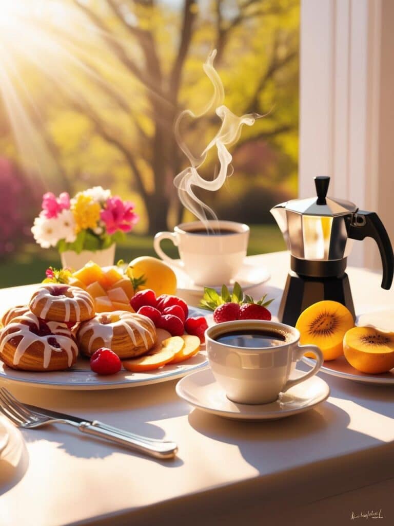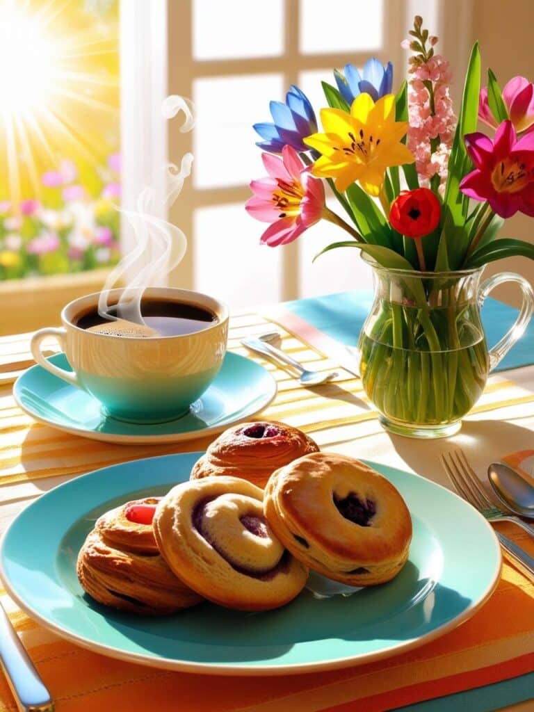 Che ci sia un caffè fumante accanto a noi o una tazza di tè con biscotti freschi, la colazione è il momento ideale per ricaricarsi. Non c'è modo migliore di iniziare il sabato che con una pausa dolce, circondati da fiori freschi e dalla calda luce del sole che entra dalla finestra. La colazione è il momento perfetto per riflettere sulla giornata che ci aspetta, fare un piano e decidere come sfruttare al meglio le ore che abbiamo.