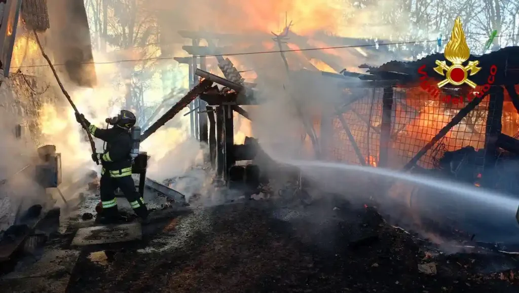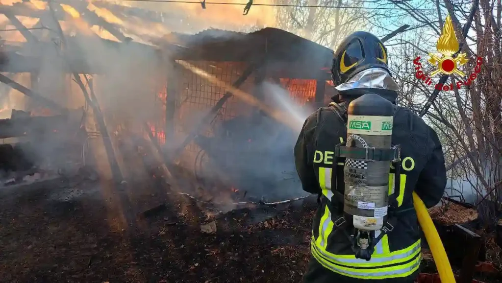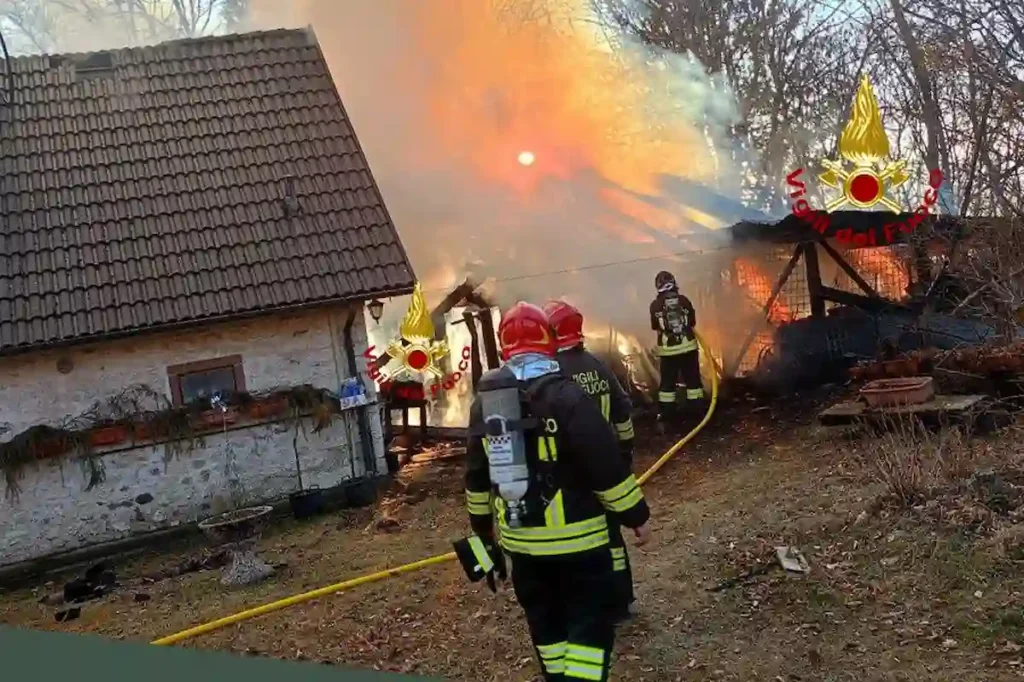 Incendio in un ricovero agricolo ed esplosione di una bombola GPL: l'intervento dei vigili del fuoco salva l’abitazione vicina. Nessun ferito.