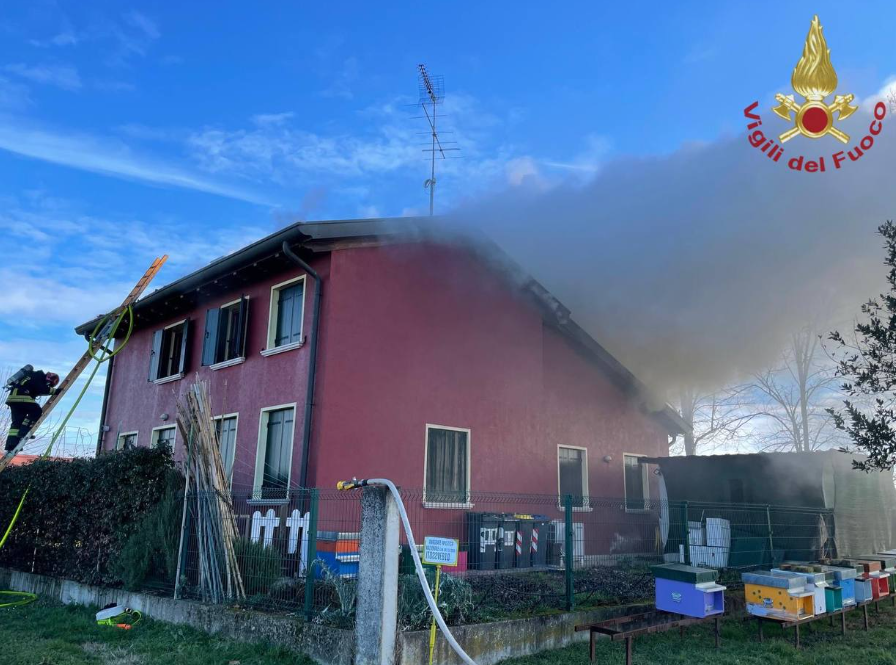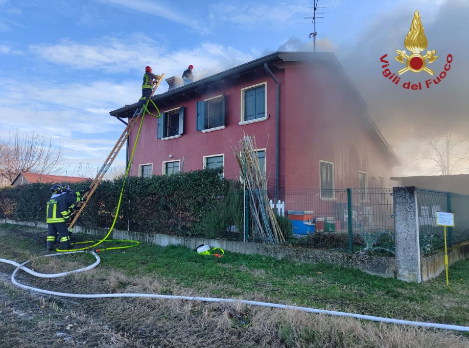 Meolo, incendio sul tetto di un’abitazione in via Terra Nuova: intervento dei Vigili del fuoco, nessun ferito.