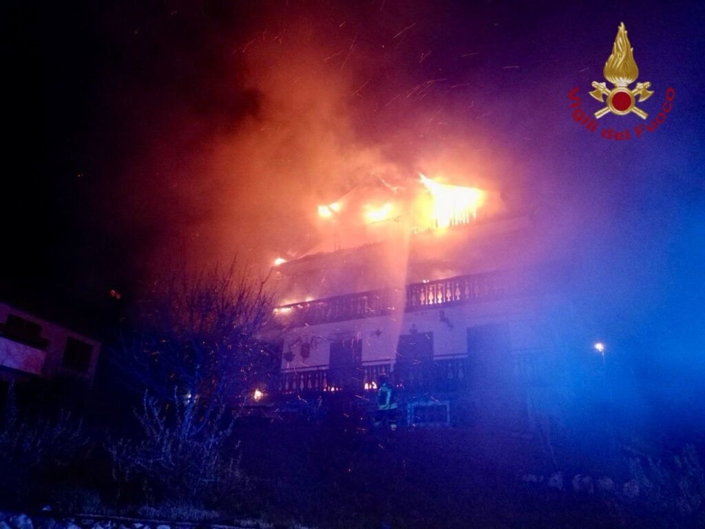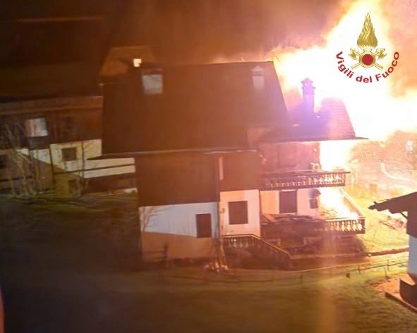 Incendio sul tetto di un'abitazione a Zoldo Alto, le fiamme divampano dalla canna fumaria: 20 pompieri in azione per spegnere il rogo.