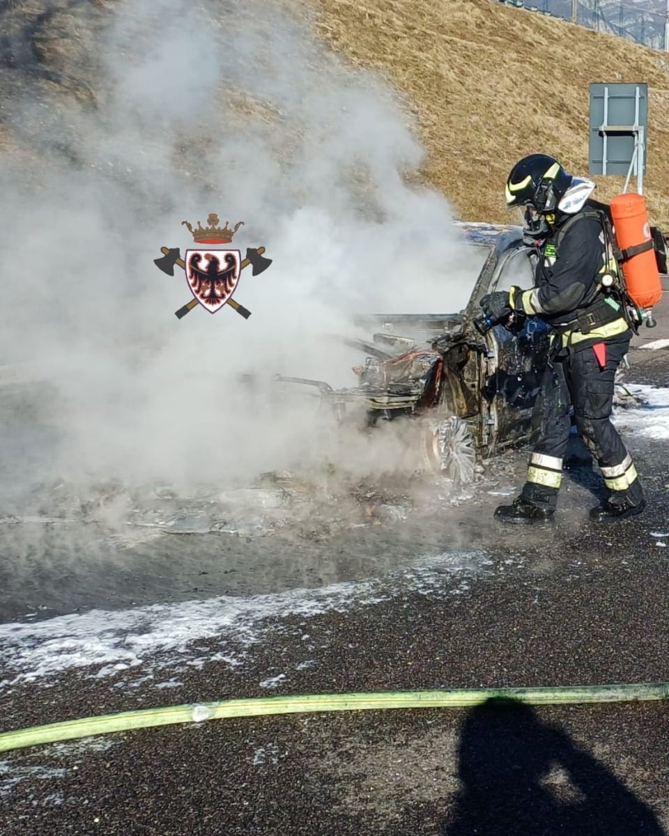 L’allertamento è scattato alle 12.15. All’arrivo sul posto dei Vigili del Fuoco volontari di Avio, il veicolo risultava completamente avvolto dalle fiamme. L’incendio, particolarmente violento, si era già propagato oltre il guard rail, interessando la rampa adiacente alla carreggiata.