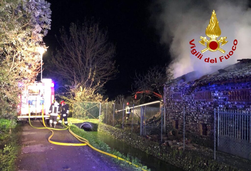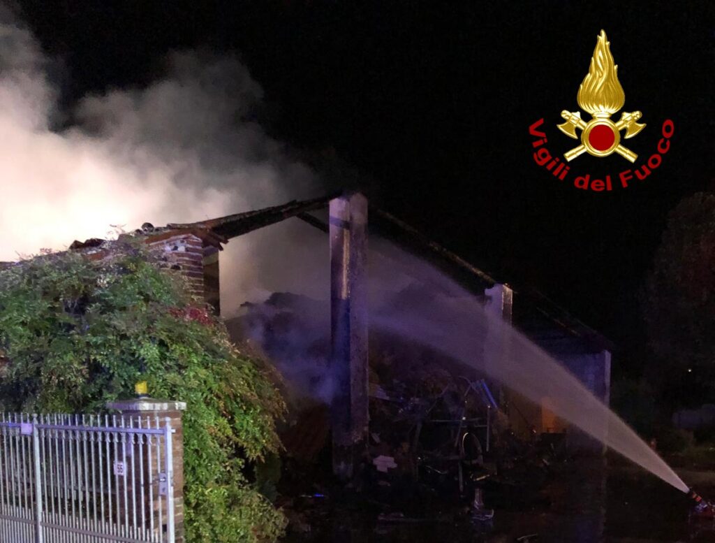 In fiamme una baracca di circa 40 mw alta circa 5 metri contenente oltre un centinaio di balle rettangolari di fieno e paglia per un totale di circa 400 quintali di foraggio.