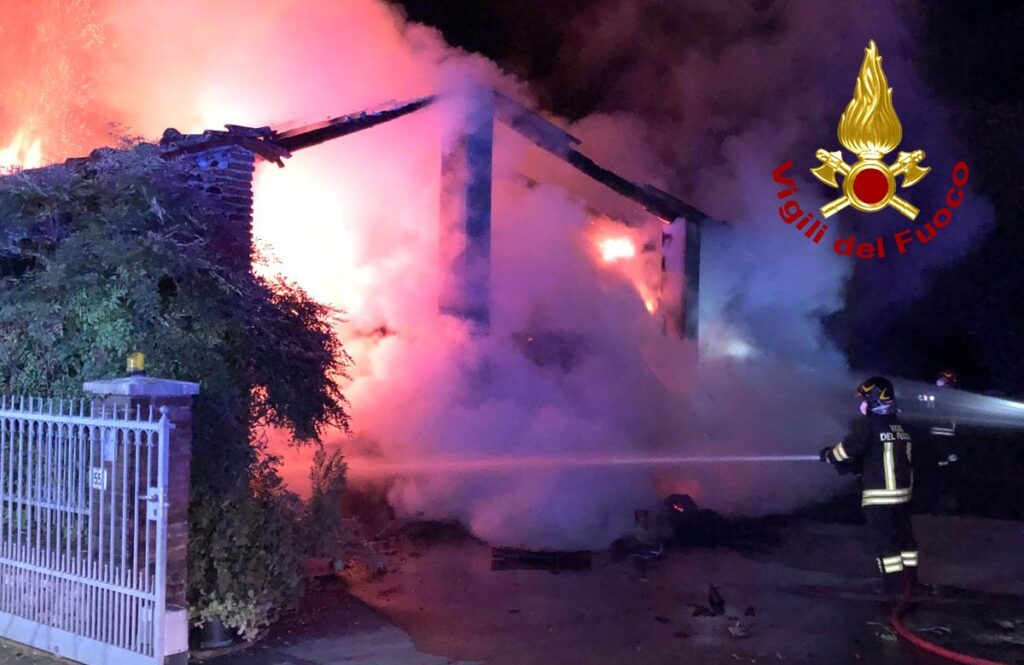 Presente anche personale del nucleo NBCR (Nucleare Biologico Chimico Radiologico) di Mestre per la decontaminazione dei mezzi e materiali dei vigili del fuoco per il coinvolgimento del tetto in parte in eternit.