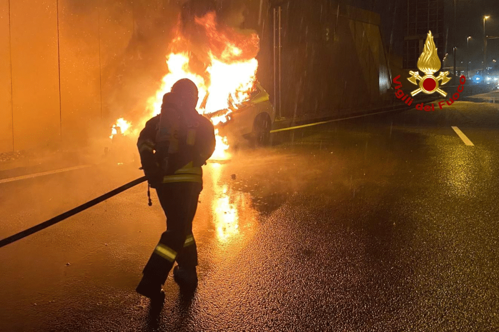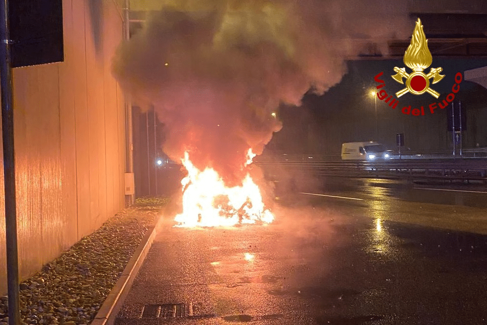 Incendio su superstrada pedemontana veneta: Bmw X3 prende fuoco, conducente illesa. Intervento dei Vigili del Fuoco e cause al vaglio.