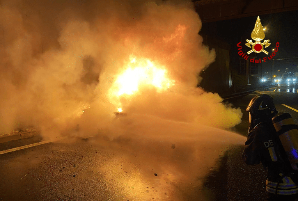 Scende dall'auto prima che prenda fuoco: Bmw distrutta dalle fiamme sulla superstrada