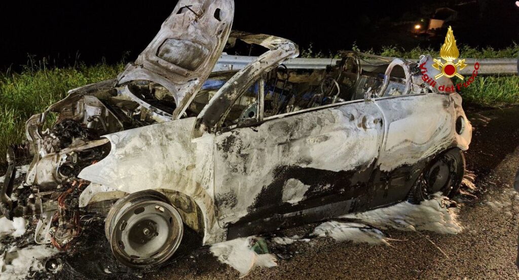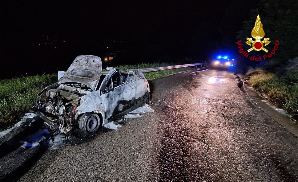 Paura nella notte, l’auto all’improvviso avvolta dalle fiamme: conducente si salva -