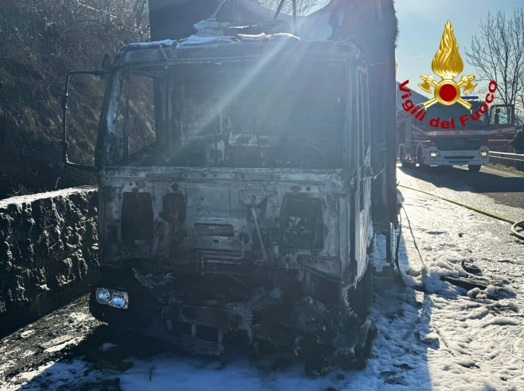 Camion prende fuoco sulla strada del Costo: veicolo completamente distrutto dalle fiamme