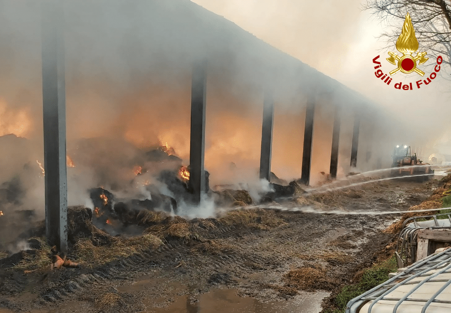 ROSA' (VICENZA) - Mercoledì 19 marzo, poco dopo le 3:00, le squadre dei vigili del fuoco sono intervenute in Via Filzi a Rosà per spegnere un incendio scoppiato all’interno di un capannone di circa 1300 mq, utilizzato da un'azienda agricola. Le fiamme hanno interessato un'area che conteneva circa 130 rotoballe di foraggio, mangimi e macchinari, ma fortunatamente non ci sono stati feriti.