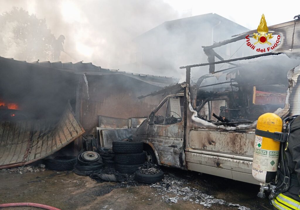 I vigili del fuoco sono riusciti a circoscrivere le fiamme, evitando il coinvolgimento totale della struttura e dell’abitazione posta sopra la carrozzeria.
