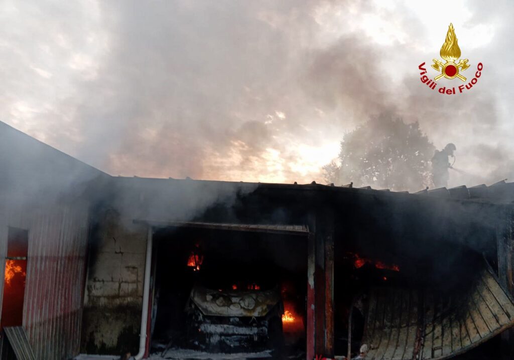 Coinvolte dalle fiamme diverse auto d’interesse storico tra l’interno e l’esterno dei locali tra cui anche un camper, un gruppo ossiacetilenico, una saldatrice a gas e diverso materiale e attrezzature depositate all’interno della carrozzeria.