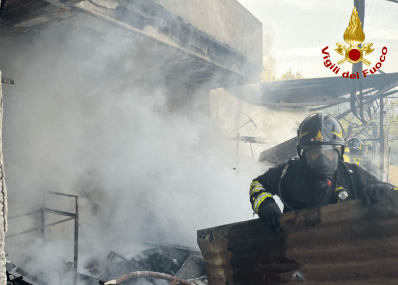 Erano le 18:40 circa quando diversi residenti della zona hanno segnalato la presenza di fiamme e fumo provenienti da una proprietà privata. All’arrivo dei Vigili del fuoco, la situazione appariva già critica: le fiamme stavano per lambire la casa e minacciavano di estendersi all’interno. La tettoia, utilizzata come area di rimessaggio, era completamente avvolta dal fuoco.