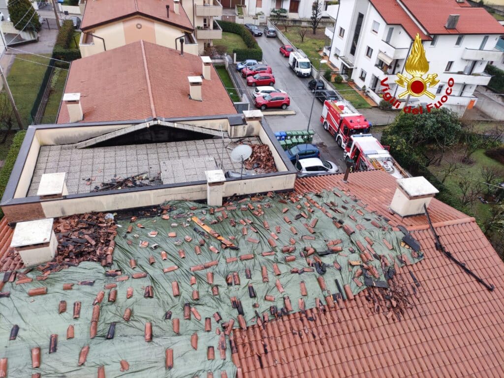Incendio in un condominio a Bassano del Grappa: due appartamenti e il tetto distrutti. Nessun ferito, ma ingenti danni. Le cause sono in fase di accertamento.