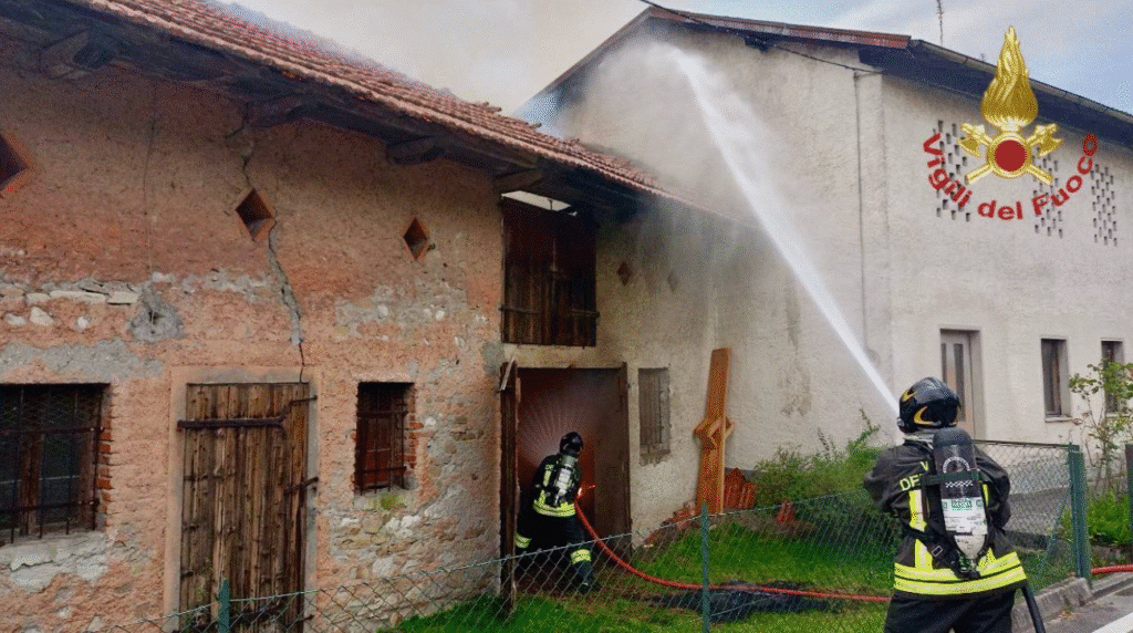 Le fiamme hanno coinvolto in parte il tetto della casa adiacente al deposito, che è stata comunque salvata da danni più gravi. Grazie all’azione dei pompieri, è stato possibile contenere il fuoco prima che si estendesse ulteriormente.