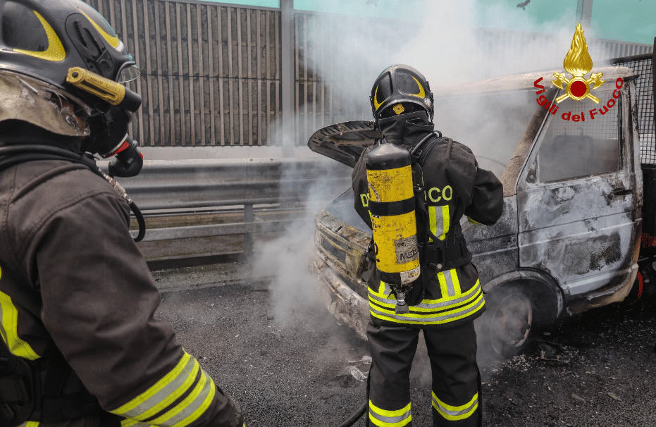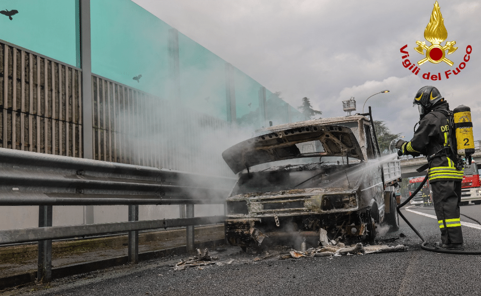 Paura in autostrada, furgone prende fuoco in corsia: veicolo distrutto dalle fiamme, traffico rallentato