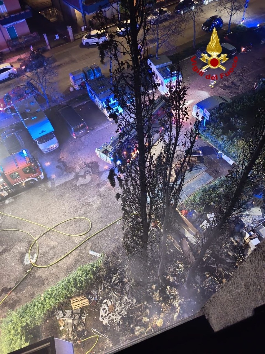 L’allarme è scattato poco dopo le 21.30 in via Carlo Belviglieri. Secondo quanto ricostruito dai Vigili del Fuoco, le fiamme si sarebbero sviluppate da una navetta per rifiuti da cantiere collocata nel piazzale esterno, in un’area interessata da lavori.