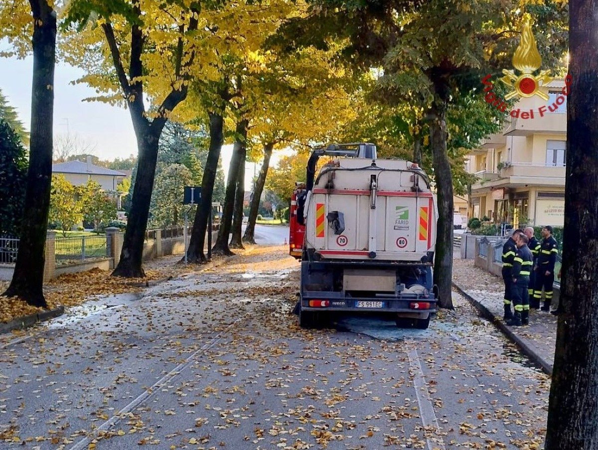 MANSUÈ (TV) – Attimi di apprensione questa mattina intorno alle 7.00 in via Roma, dove una macchina spazzatrice alimentata a metano ha preso fuoco durante le operazioni di pulizia stradale.