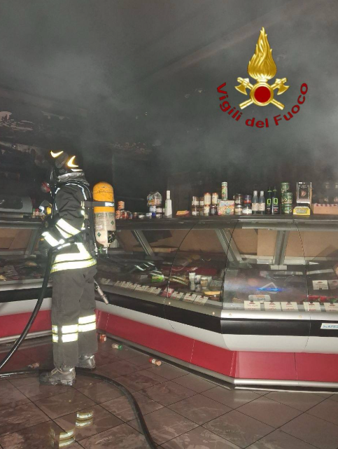 Macelleria va a fuoco: fumo e fiamme invadono il locale
