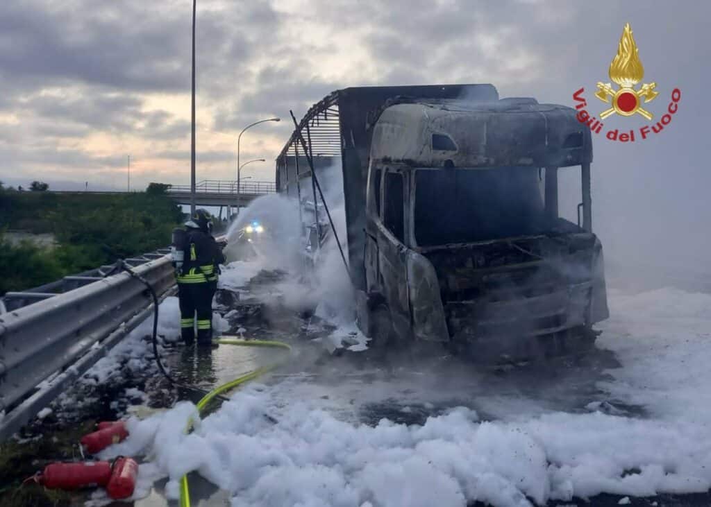 Mezzo pesante in fiamme sull'A4: miracolato l'autista