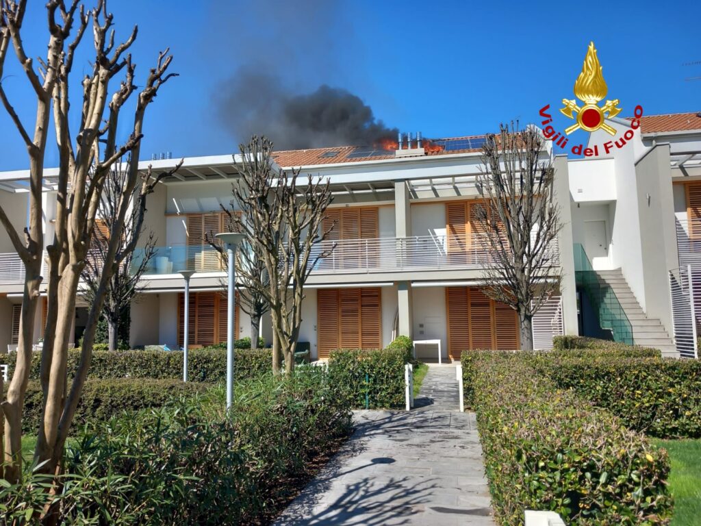 Prendono fuoco i pannelli solari di una casa vacanze a Jesolo, intervengono i Vigili del Fuoco.