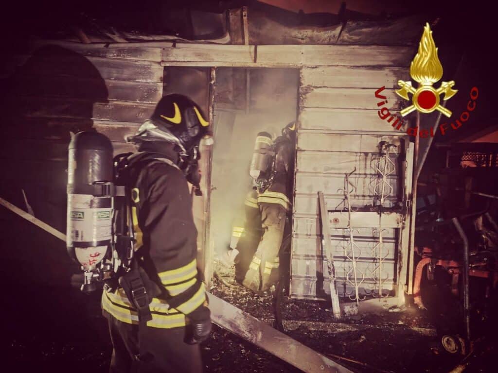 Incendio in un ricovero attrezzi nella notte: fiamme spente prima che arrivassero alla casa