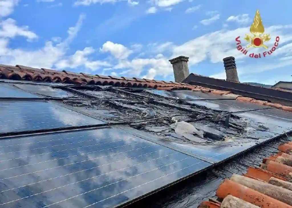 Fiamme sul tetto, bruciano i pannelli fotovoltaici. Decisivo il rapido intervento dei Vigili del fuoco.