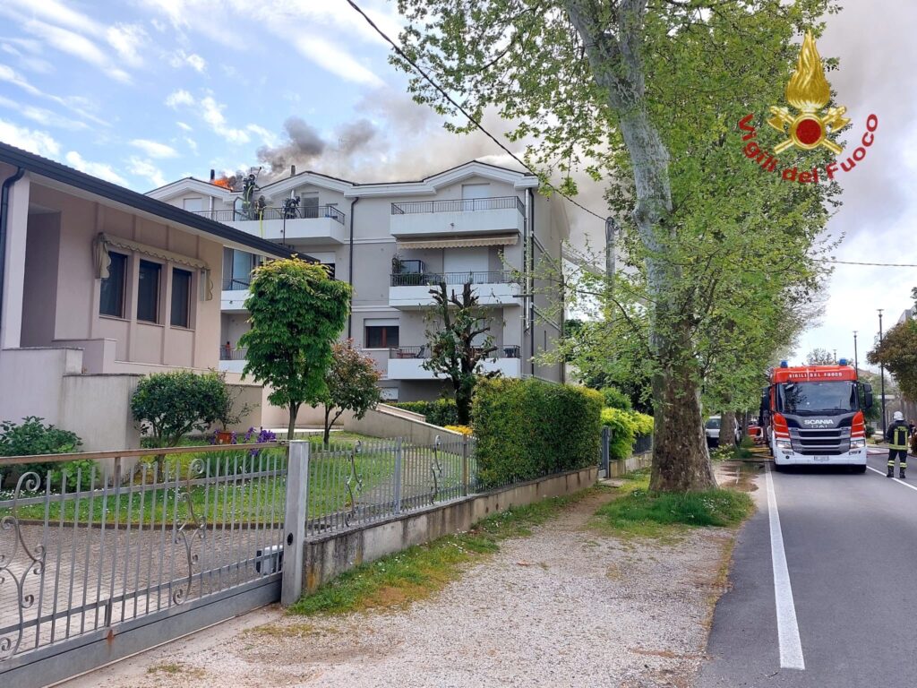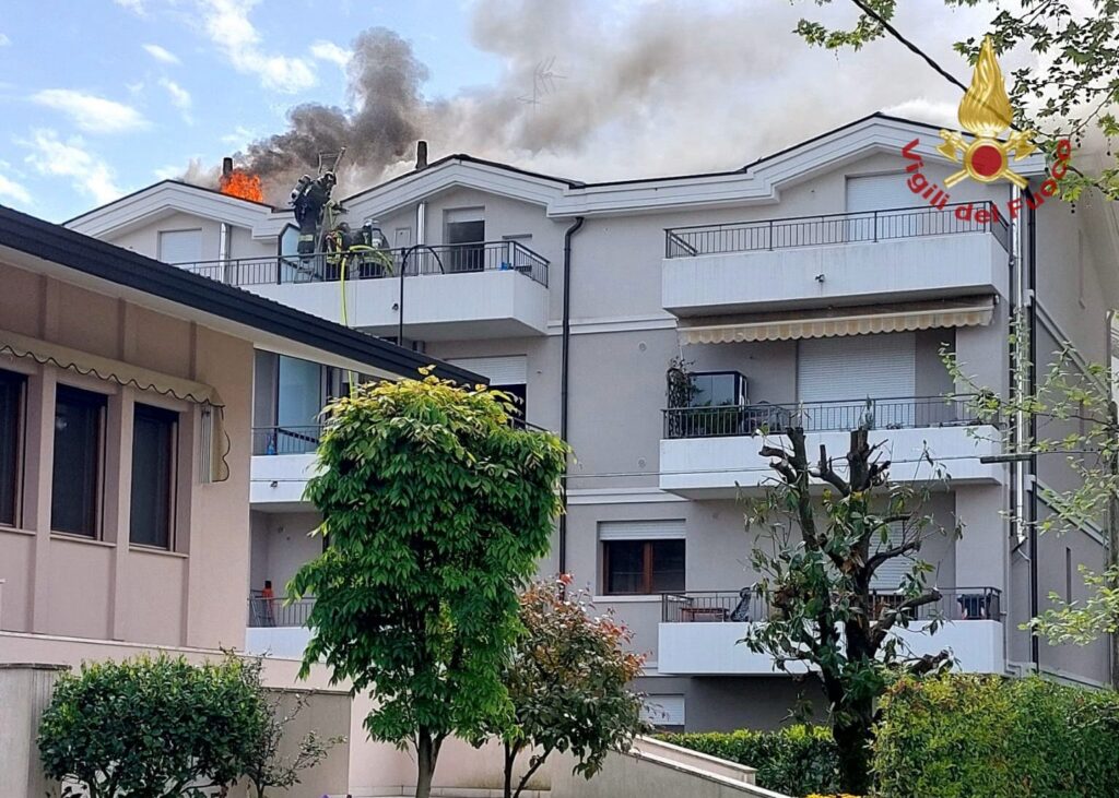Incendio sul tetto di una palazzina a Quarto d'Altino (VE): intervento dei Vigili del Fuoco con ben 30 operatori. Nessuna persona coinvolta.